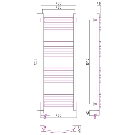 Полотенцесушитель электрический 1200x400 золотой МЭМ левый Сунержа Аркус 2.0 03-5604-1240