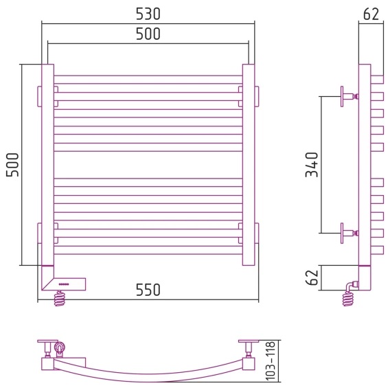 Полотенцесушитель электрический 500x500 МЭМ правый Сунержа Аркус 2.0 00-5605-5050