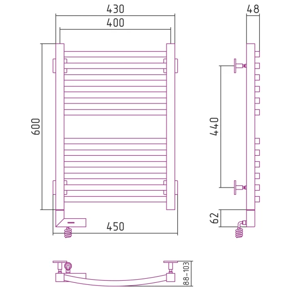 Полотенцесушитель электрический 600x400 темный титан муар МЭМ правый Сунержа Аркус 2.0 15-5605-6040
