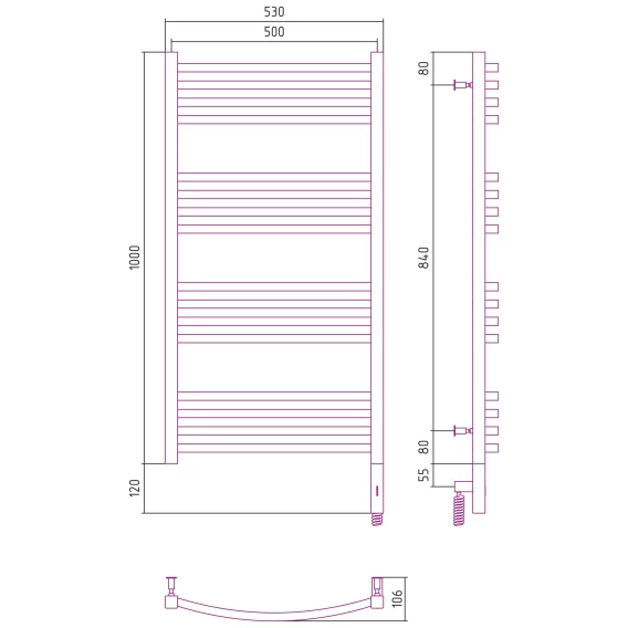 Полотенцесушитель электрический 1000x500 темный титан муар МЭМ правый Сунержа Аркус 3.0 15-5705-1050