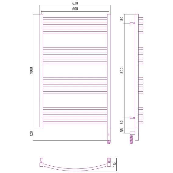 Полотенцесушитель электрический 1000x600 темный титан муар МЭМ правый Сунержа Аркус 3.0 15-5705-1060