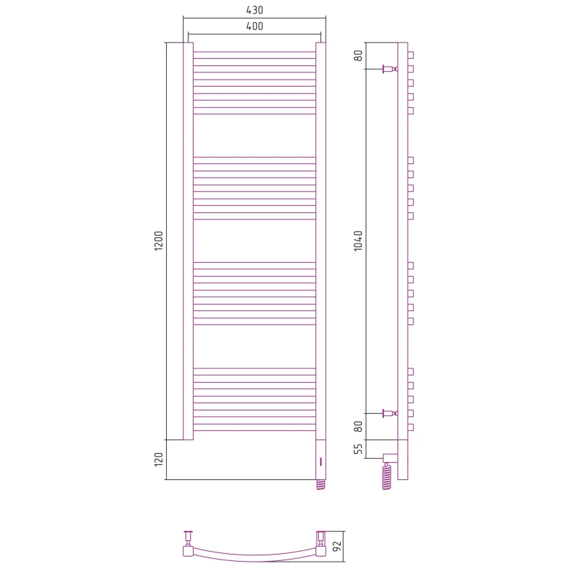 Полотенцесушитель водяной Grota Eco Calma 4607118214709 1200x480, хром