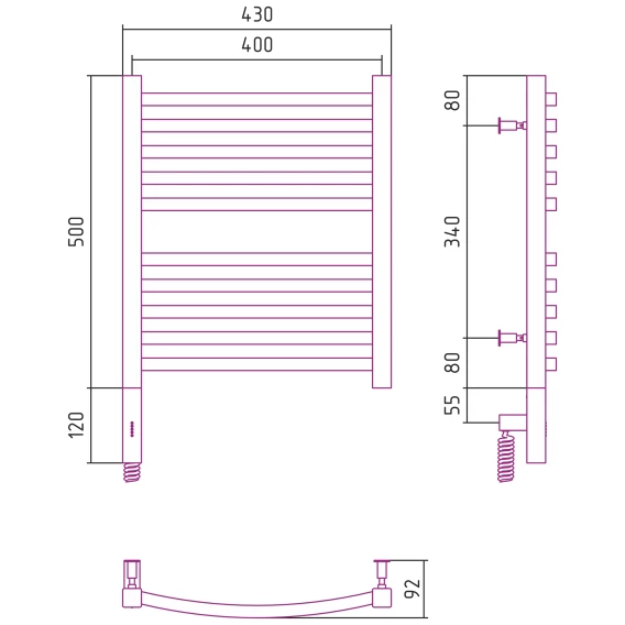 Полотенцесушитель электрический 500x400 сатин МЭМ левый Сунержа Аркус 3.0 071-5704-5040