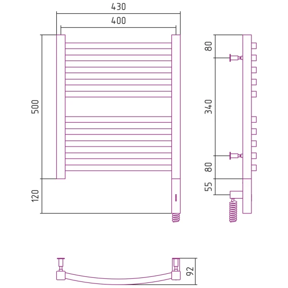 Полотенцесушитель электрический 500x400 белый глянец МЭМ правый Сунержа Аркус 3.0 12-5705-5040