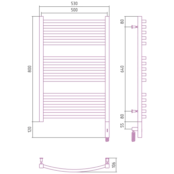 Полотенцесушитель электрический 800x500 белый глянец МЭМ правый Сунержа Аркус 3.0 12-5705-8050