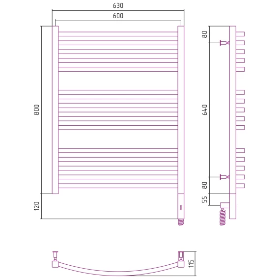 Полотенцесушитель электрический 800x600 темный титан муар МЭМ правый Сунержа Аркус 3.0 15-5705-8060
