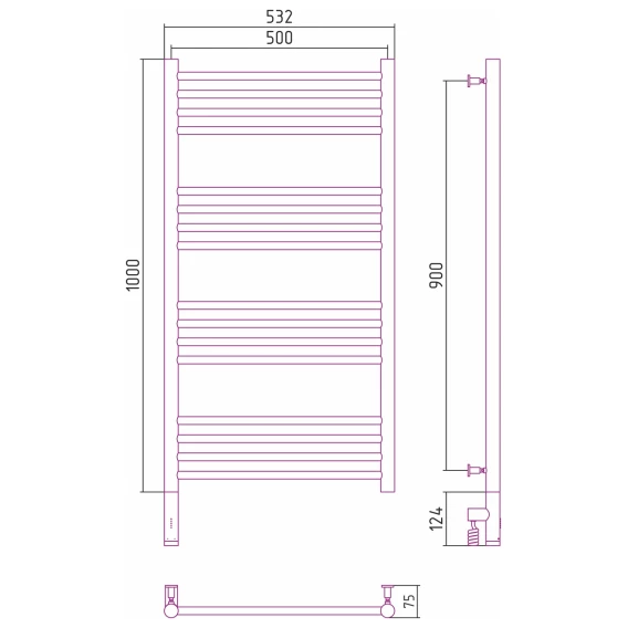 Полотенцесушитель электрический 1000x500 золотой матовый МЭМ левый, перемычка прямая Сунержа Богема 3.0 032-5804-1050