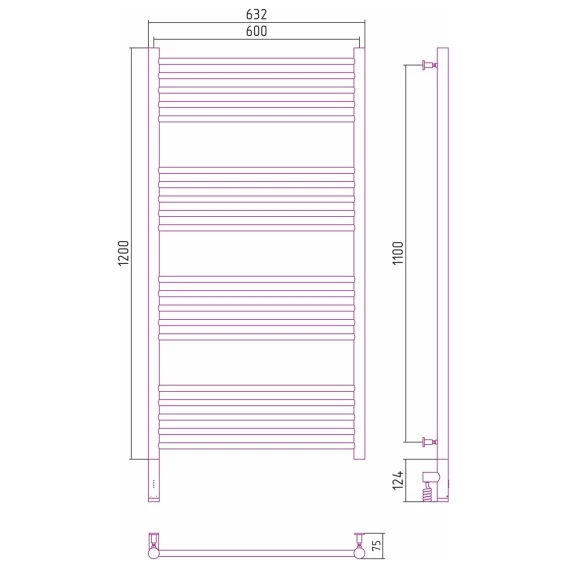 Полотенцесушитель электрический 1200x600 белый глянец МЭМ левый, перемычка прямая Сунержа Богема 3.0 12-5804-1260