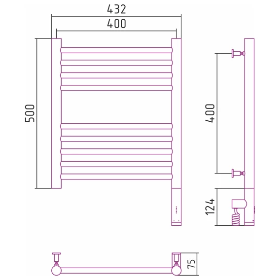 Полотенцесушитель электрический 500x400 темный титан муар МЭМ правый, перемычка прямая Сунержа Богема 3.0 15-5805-5040