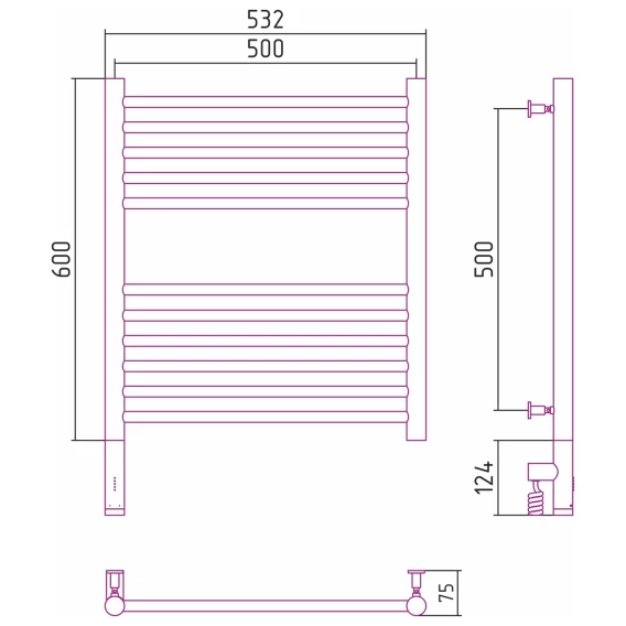 Полотенцесушитель электрический 600x500 золотой матовый МЭМ левый, перемычка прямая Сунержа Богема 3.0 032-5804-6050
