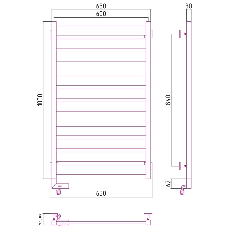 Полотенцесушитель водяной 865x700 Secado Турин 1 4673739249970