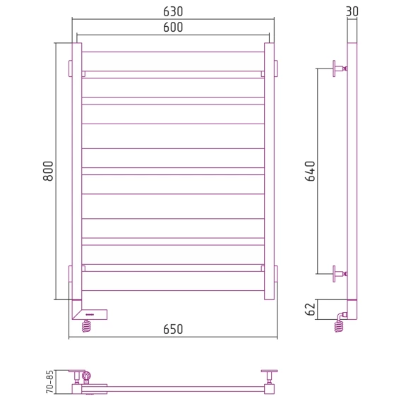 Полотенцесушитель электрический 800x600 белый глянец МЭМ правый Сунержа Центурион 2.0 12-5603-8060