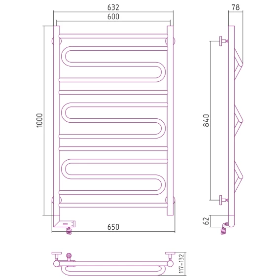 Полотенцесушитель электрический 1000x600 золотой МЭМ левый Сунержа Элегия 2.0 03-5218-1060