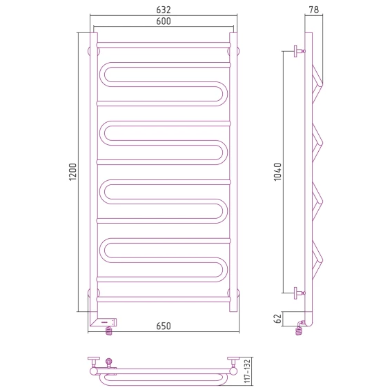 Полотенцесушитель водяной 600x632 Secado Мерида 4 4603777445751