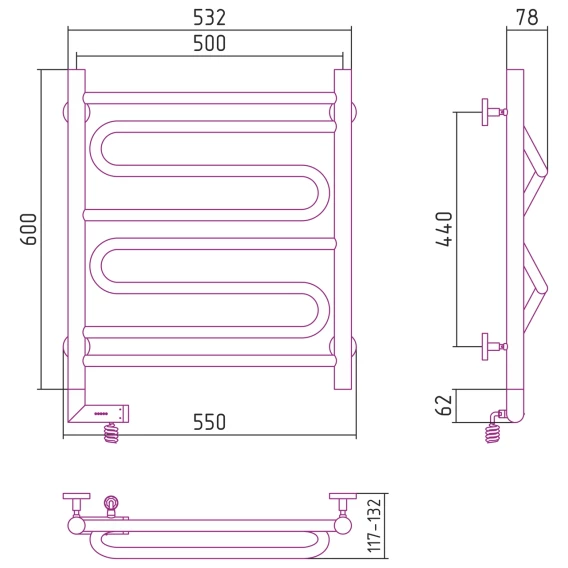 Полотенцесушитель электрический 600x500 белый глянец МЭМ левый Сунержа Элегия 2.0 12-5218-6050