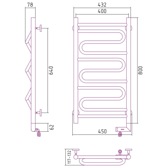 Полотенцесушитель электрический 800x400 МЭМ правый Сунержа Элегия 2.0 00-5219-8040