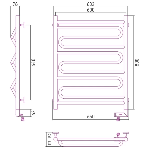 Полотенцесушитель электрический 800x600 МЭМ правый Сунержа Элегия 2.0 00-5219-8060