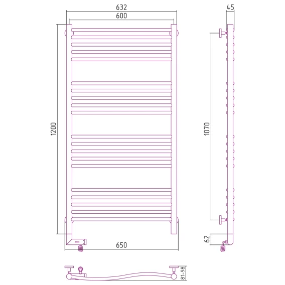 Полотенцесушитель электрический 1200x600 белый глянец МЭМ правый Сунержа Флюид 2.0 12-5221-1260