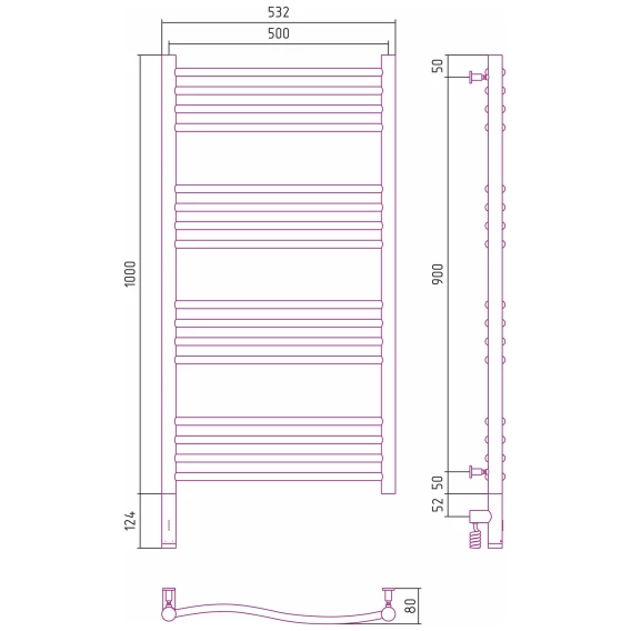 Полотенцесушитель электрический 1000x500 сатин МЭМ левый Сунержа Флюид 3.0 071-5820-1050