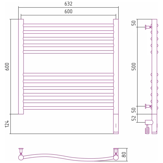 Полотенцесушитель электрический 600x600 состаренная бронза МЭМ правый Сунержа Флюид 3.0 05-5821-6060