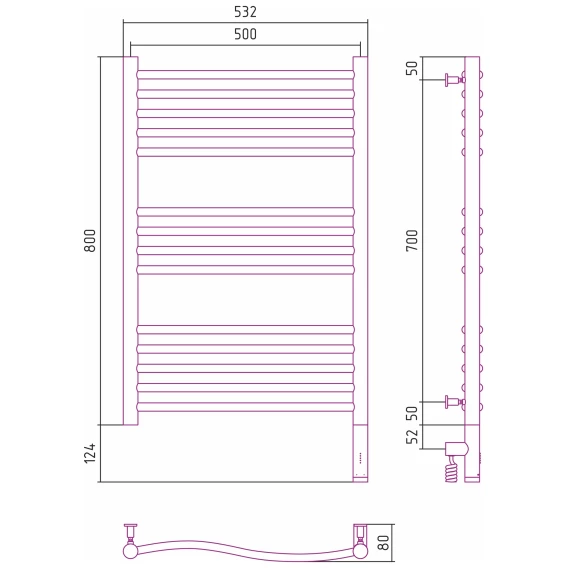 Полотенцесушитель электрический 800x500 состаренная бронза МЭМ правый Сунержа Флюид 3.0 05-5821-8050