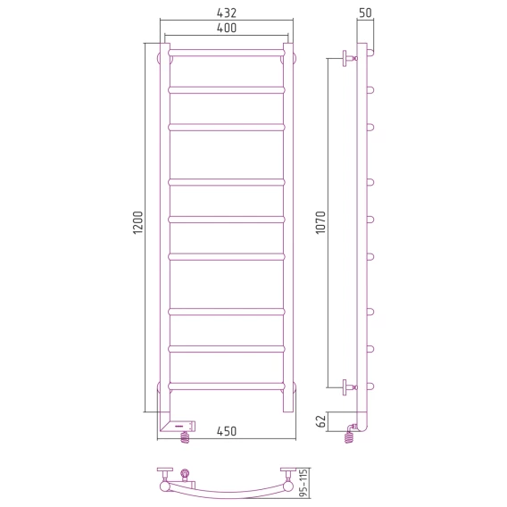 Полотенцесушитель электрический 870x632 ТЭН правый Secado Триада 3 4603777469191