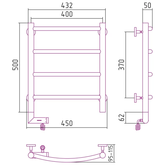 Полотенцесушитель электрический 500x400 золотой матовый МЭМ левый Сунержа Галант 2.0 032-5200-5040