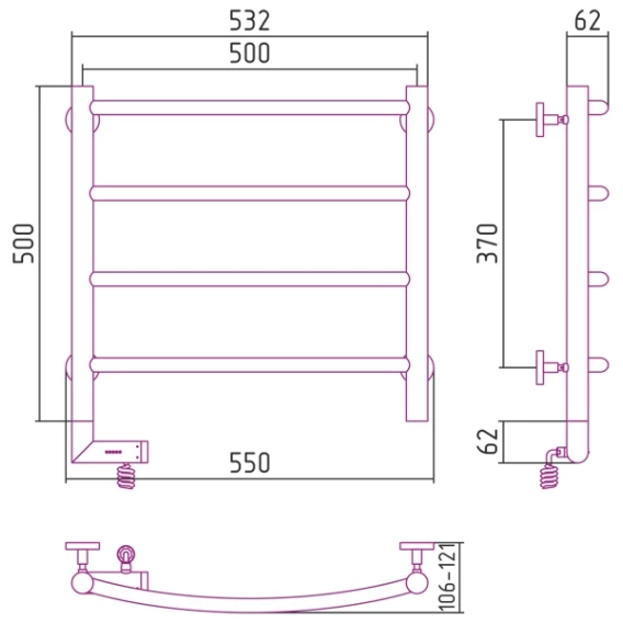 Полотенцесушитель электрический 500x500 МЭМ левый Сунержа Галант 2.0 00-5200-5050