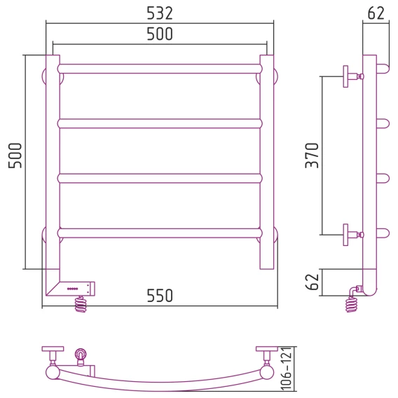 Полотенцесушитель электрический 500x500 золотой МЭМ левый Сунержа Галант 2.0 03-5200-5050