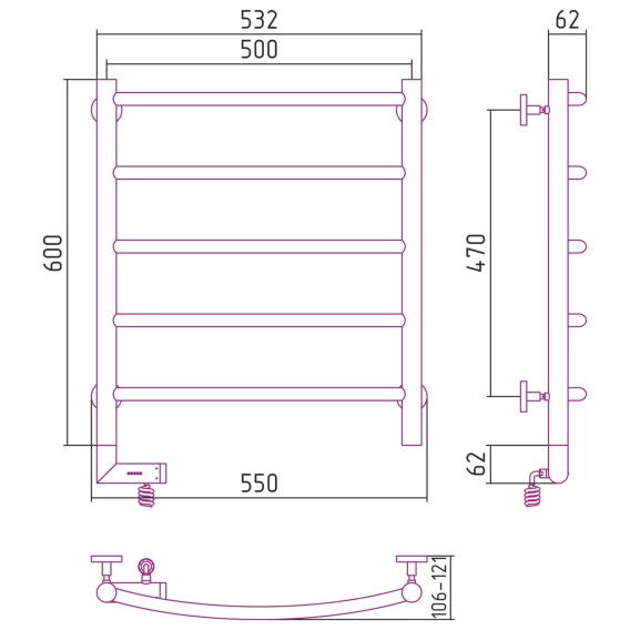 Полотенцесушитель электрический 600x500 темный титан муар МЭМ правый Сунержа Галант 2.0 15-5201-6050