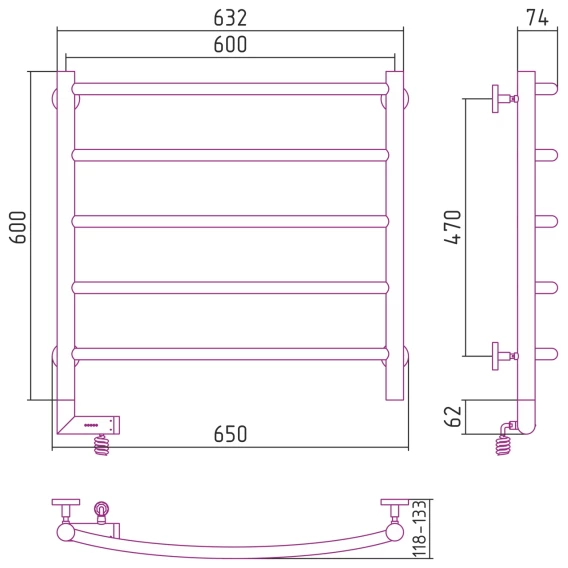 Полотенцесушитель электрический 600x600 золотой МЭМ правый Сунержа Галант 2.0 03-5201-6060
