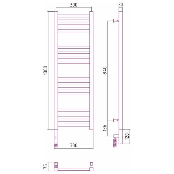 Полотенцесушитель электрический 1000x300 сатин МЭМ левый Сунержа Модус 3.0 071-5700-1030