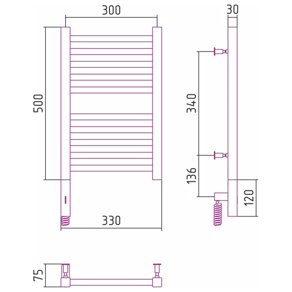 Полотенцесушитель электрический 500x300 шампань МЭМ правый Сунержа Модус 3.0 020-5701-5030
