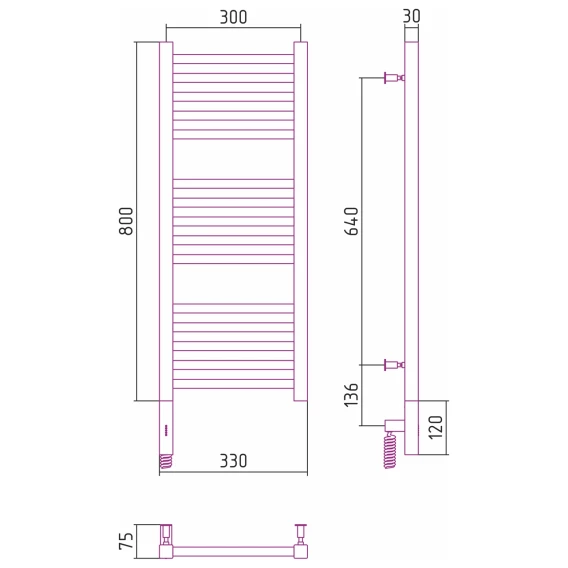Полотенцесушитель электрический 800x300 сатин МЭМ левый Сунержа Модус 3.0 071-5700-8030