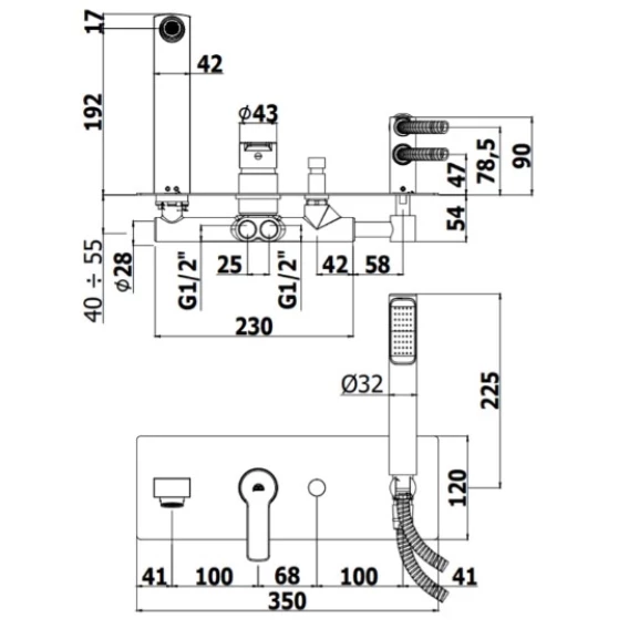 Аэратор, Душевой шланг, Душевая лейка, Подключение для душевого шланга с держателем, Скрытая монтажная часть