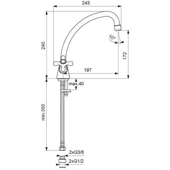 Крепление, Аэратор, Гибкая подводка, Переходник для подводки на 1/2''