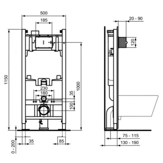 - Встраиваемый бачок с фронтальным механическим управлением.