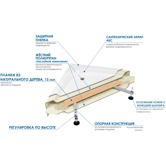 Акриловый поддон 70x70x14 см Wemor 70/14 S