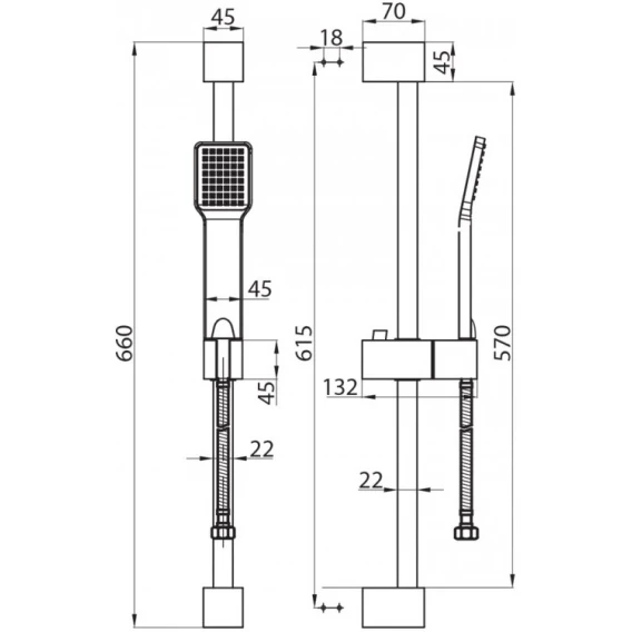 Душевой шланг, Душевая лейка, Держатель для душевой лейки, Штанга душевая