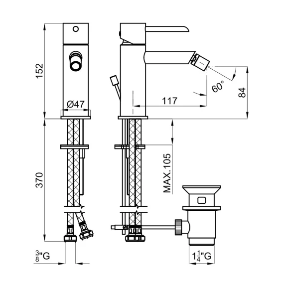 Смеситель для биде с донным клапаном Noken Round N199999101