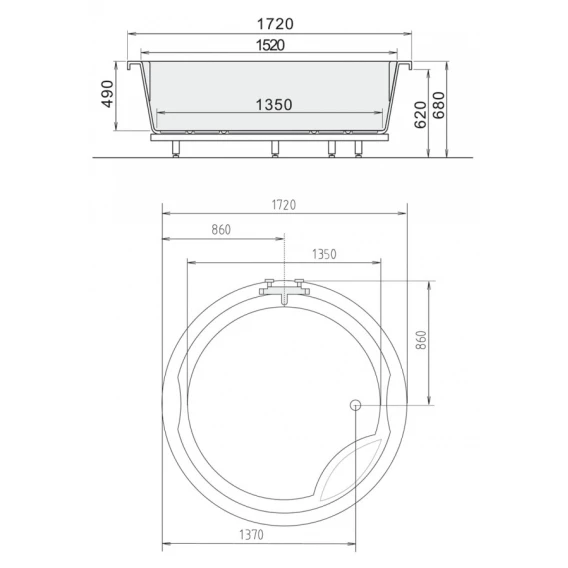 Акриловая ванна 172 см Alpen Royal Round 73211