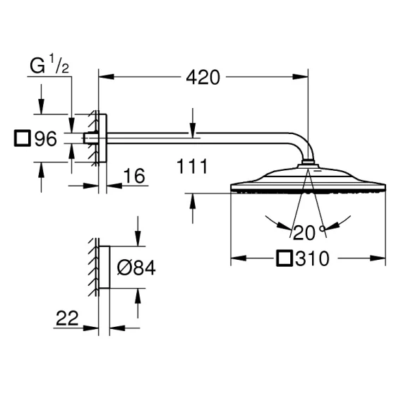 Верхний душ 310 мм Grohe Rainshower Cube 26566A00