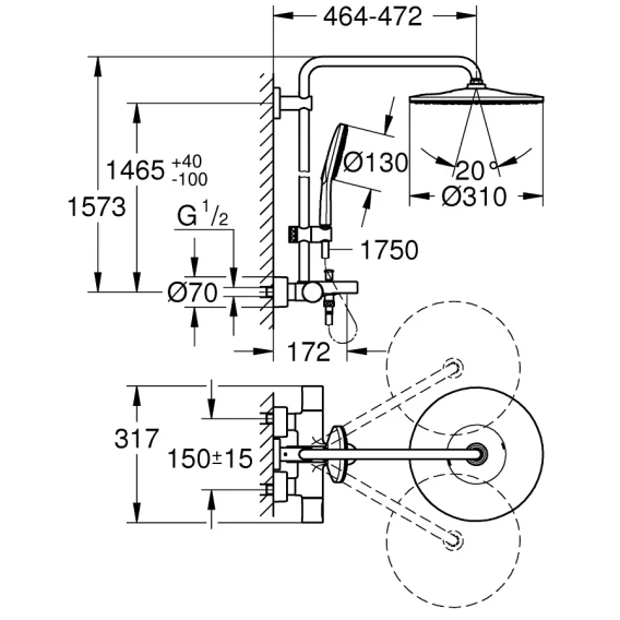 Душевая система 250 мм WasserKRAFT Glan A16701
