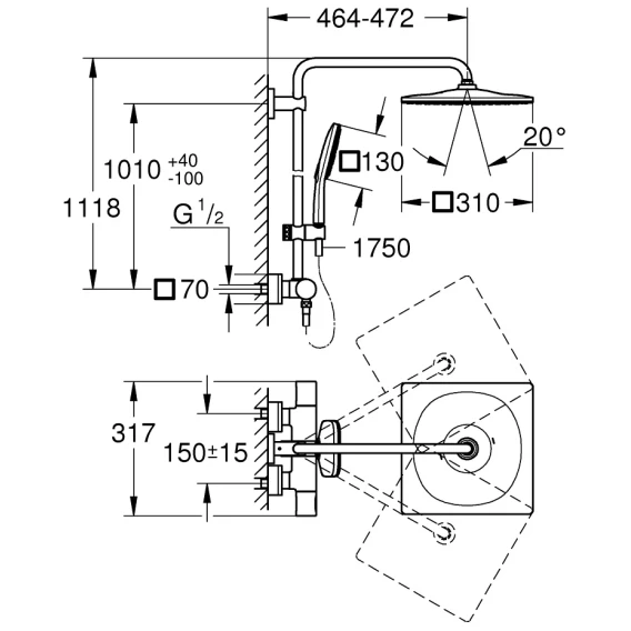 • GROHE QuickFix (регулируемое верхнее крепление)