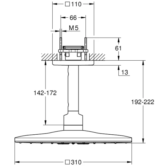 • потолочный душевой кронштейн 142 мм