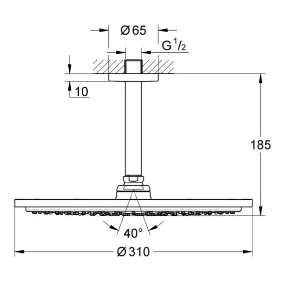 Диаметр верхнего душа 31 см