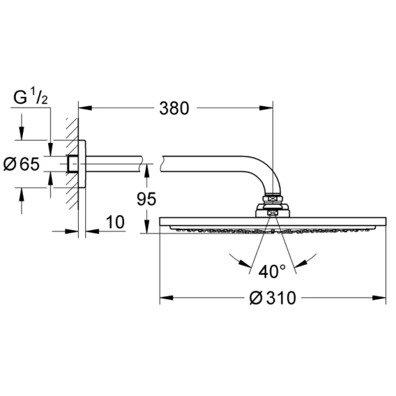 Диаметр верхнего душа 31 см