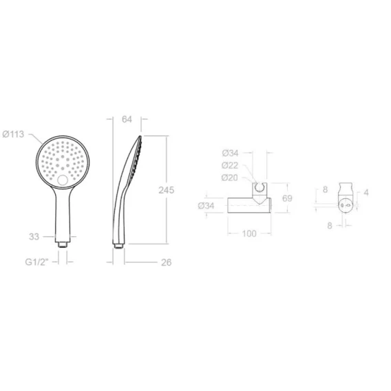 Крепление, Душевой шланг, Душевая лейка, Держатель для душевой лейки