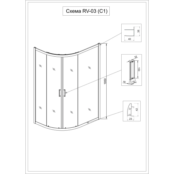 Душевой уголок 100x90 см Veconi Rovigo RV03-10090A-01-19C1 прозрачное