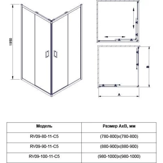 Душевой уголок 90x90 см Veconi Rovigo RV09-90-01-C7 прозрачное